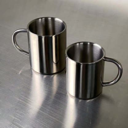 Keep your beverages at the perfect temperature with the Double-Layer Glossy Stainless Steel Cups. Available in 6.5 oz (200 mL), 10 oz (300 mL), and 13.5 oz (400 mL) sizes, these cups are ideal for everything from morning coffee to evening tea.